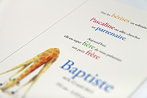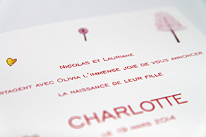 Fort d'une expérience et d'un savoir-faire de plus de 20 ans, nous vous proposons des designs originaux et variés, d'un élégant faire-part de naissance à une invitation à l'imagination débridée, en passant par la réalisation de faire-part de mariage sur mesure ou respectant les canevas de mise en page traditionnels.
